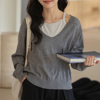 - on.[NT716]원숄더스트링레이어드니트